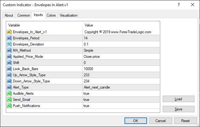 Envelopes ‘In’ Arrow Alert Indicator (MT4 and MT5)